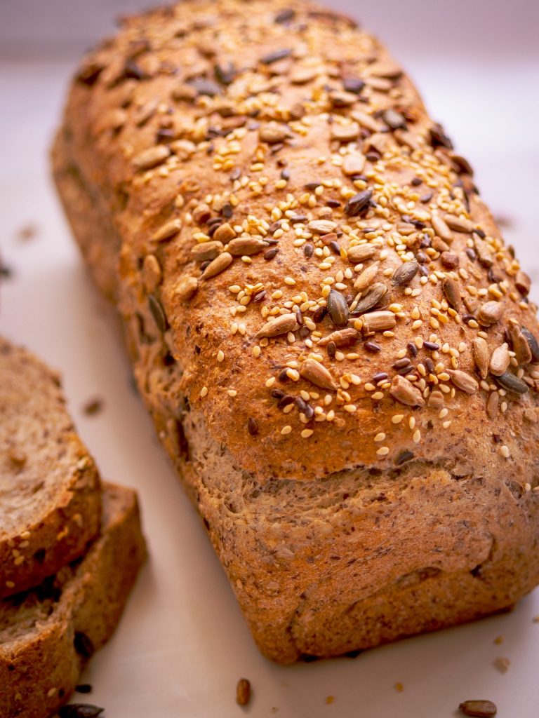 A soft multigrain sandwich loaf made with wholewheat flour. Original recipe from Season and Suppers Seeded Multigrain Sandwich Bread.