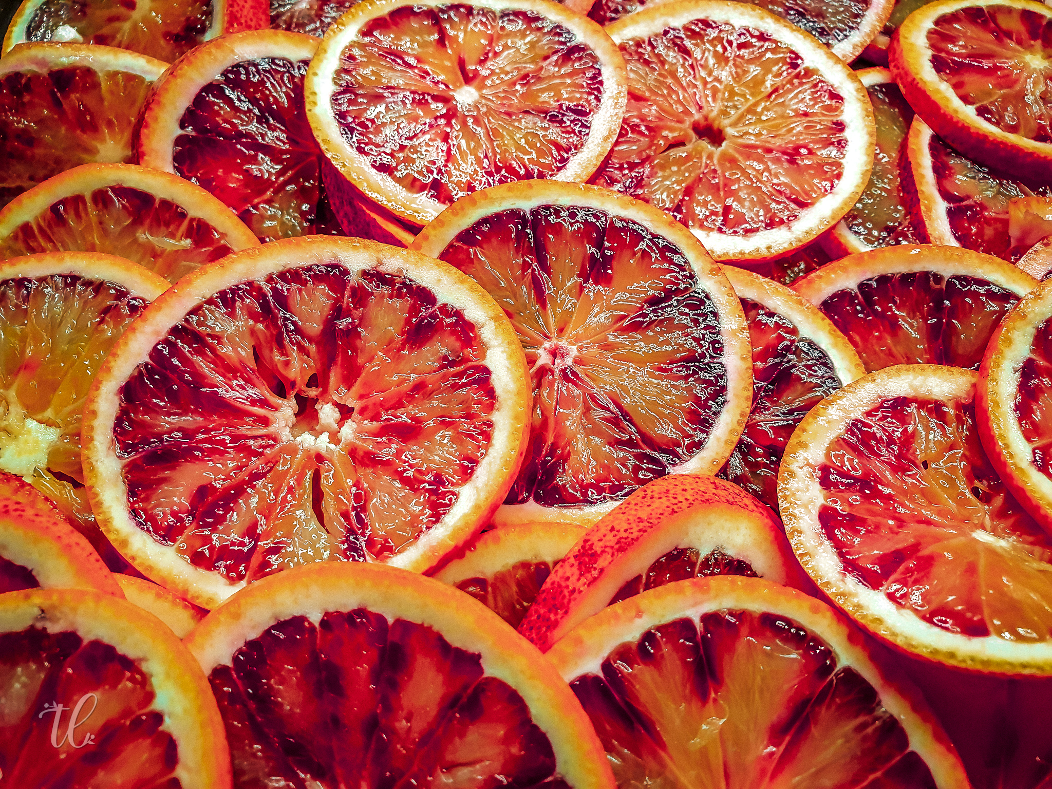 In a shallow flat baking tray, lay your slices of blood oranges. Pour the syrup over the top, then cover with some baking paper. Push the baking paper so that it touches the surface of the oranges and syrup, to create a “cartouche” then cover tightly with foil.