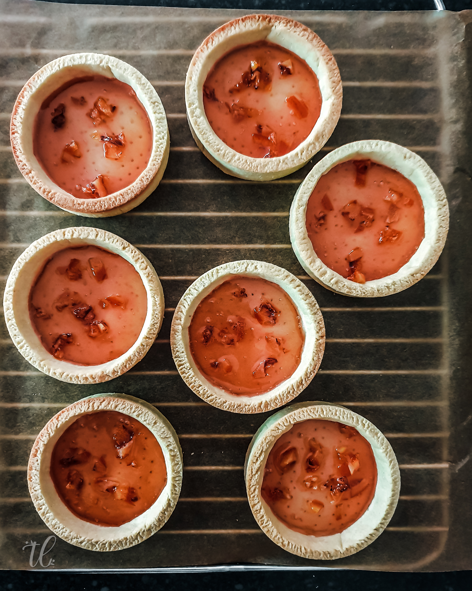 Allow cooling for 10mins then gently remove from the tartlet rings and sit on a cooling rack until ready to assemble.