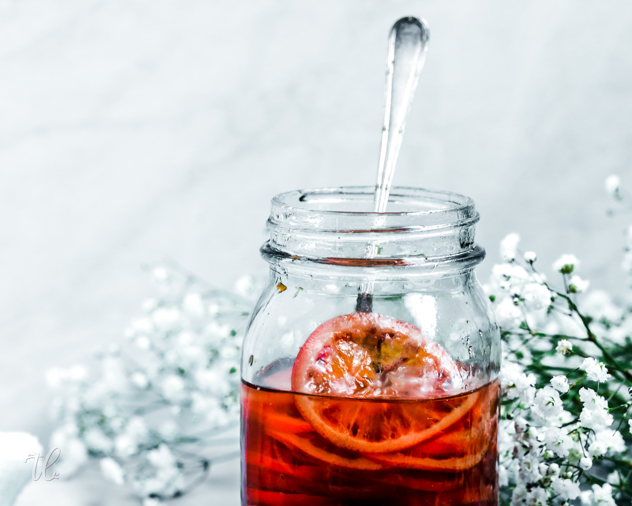 Once the sugar has dissolved, turn up the heat to a soft simmer, and allow it to thicken for approximately 15-20mins. The liquid should have turned to a thin syrup consistency.