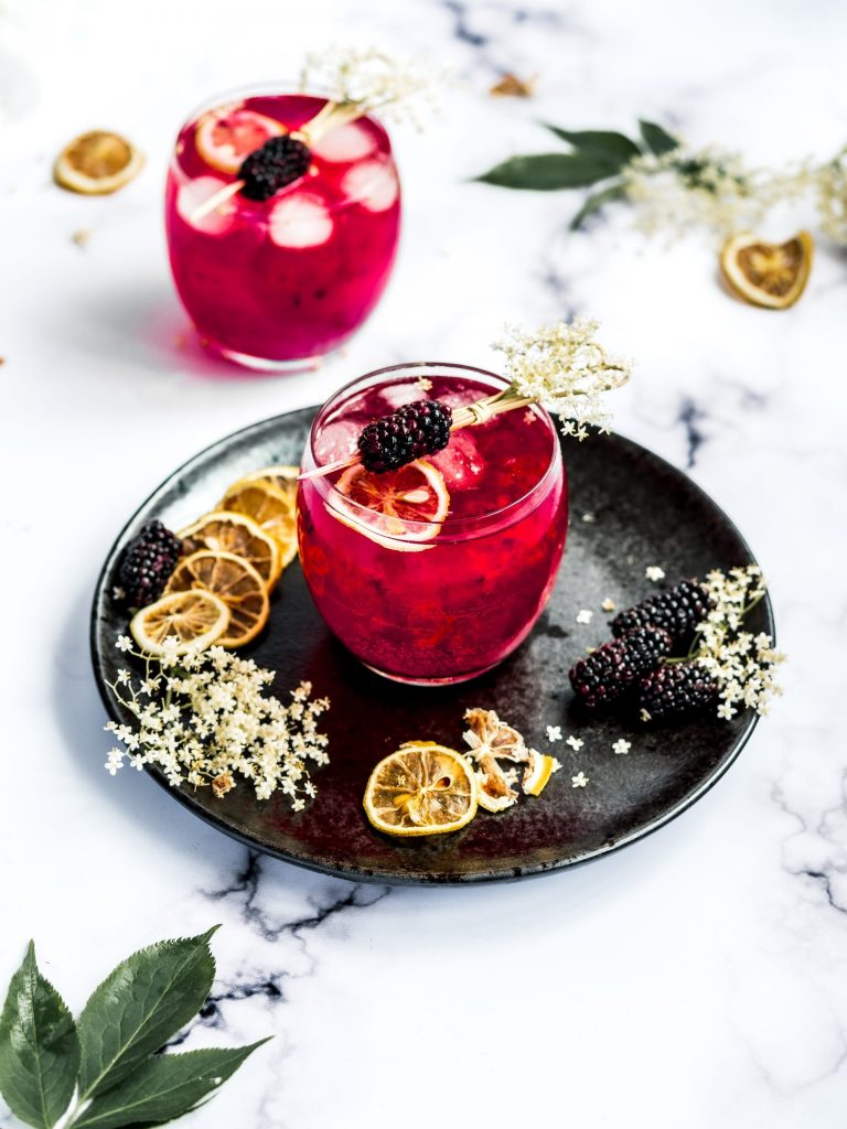 A sweet, fruity, and floral gin based summer cocktail made with homemade Elderflower cordial and fresh blackberries.